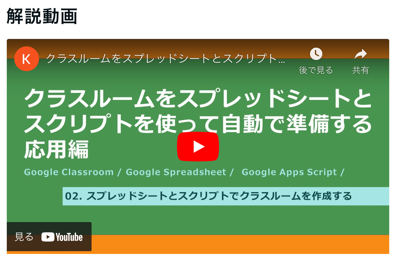 - 「Googleクラスルームでプログラミング スプレッドシートとスクリプトを使って自動化しよう 応用編」